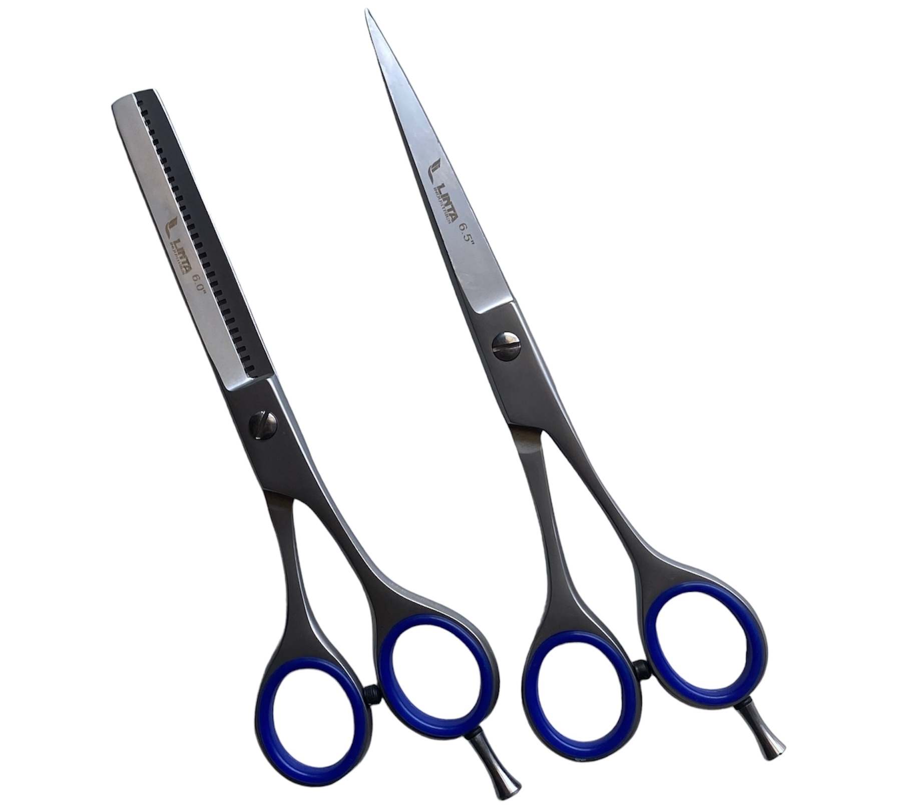 Tijeras Peluquería y Barbero Profesional de Alta Calidad. Acero Inoxidable. Condición Nuevo. Filo Nombres. Longitud: 6.5” Pulgadas. esculpir corte cabello de 6.0”on Tornillo Ajustable y Soporte Para dedos extraíble. Su diseño Permite una posición ergonómica de los dedos para que el peluquero pueda realizar el trabajo perfecto.
