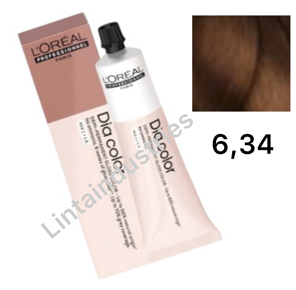 L’OREAL DIA COLOR COLORACIÓN DEMIPERMANENTE 60ML 6.34. RUBIO OSCURO DORADO COBRIZO