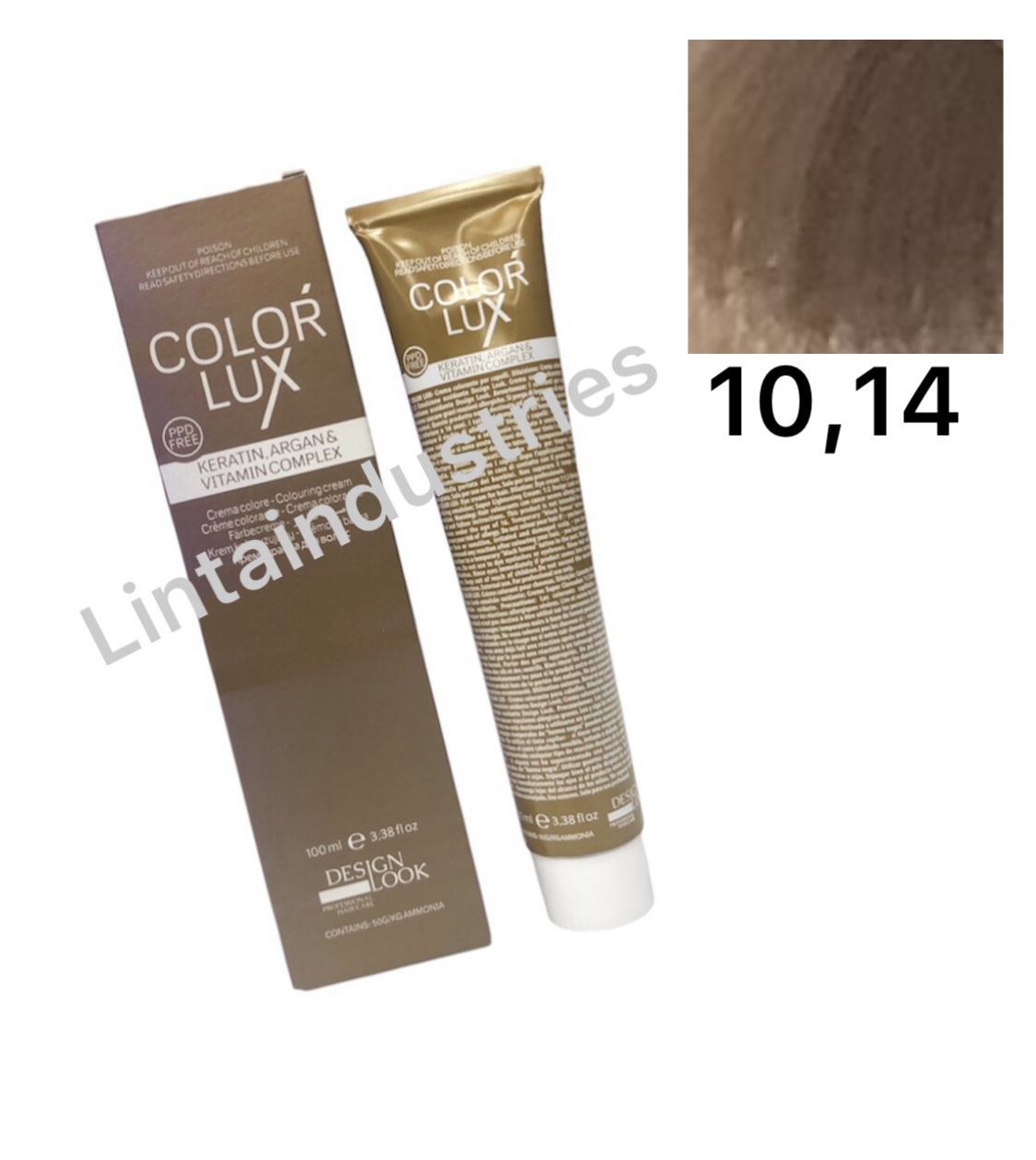 TINTE COLOR LUX 100ML (10.14) con argán y keratina de Desing Look protege el cabello durante y después del proceso técnico. La fórmula de esta tintura deja el cabello suave y brillante sin dañarlo durante el proceso. Disponible en varios tonos y correctores.