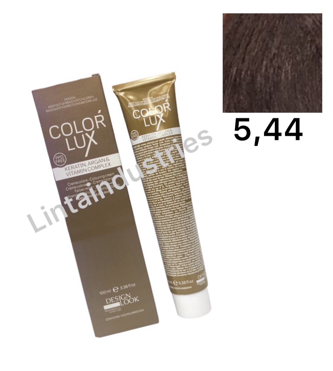 TINTE COLOR LUX 100ML (5.44) con argán y keratina de Desing Lok protege el cabello durante y después del proceso técnico. La fórmula de esta tintura deja el cabello suave y brillante sin dañarlo durante el proceso. Disponible en varios tonos y correctores.