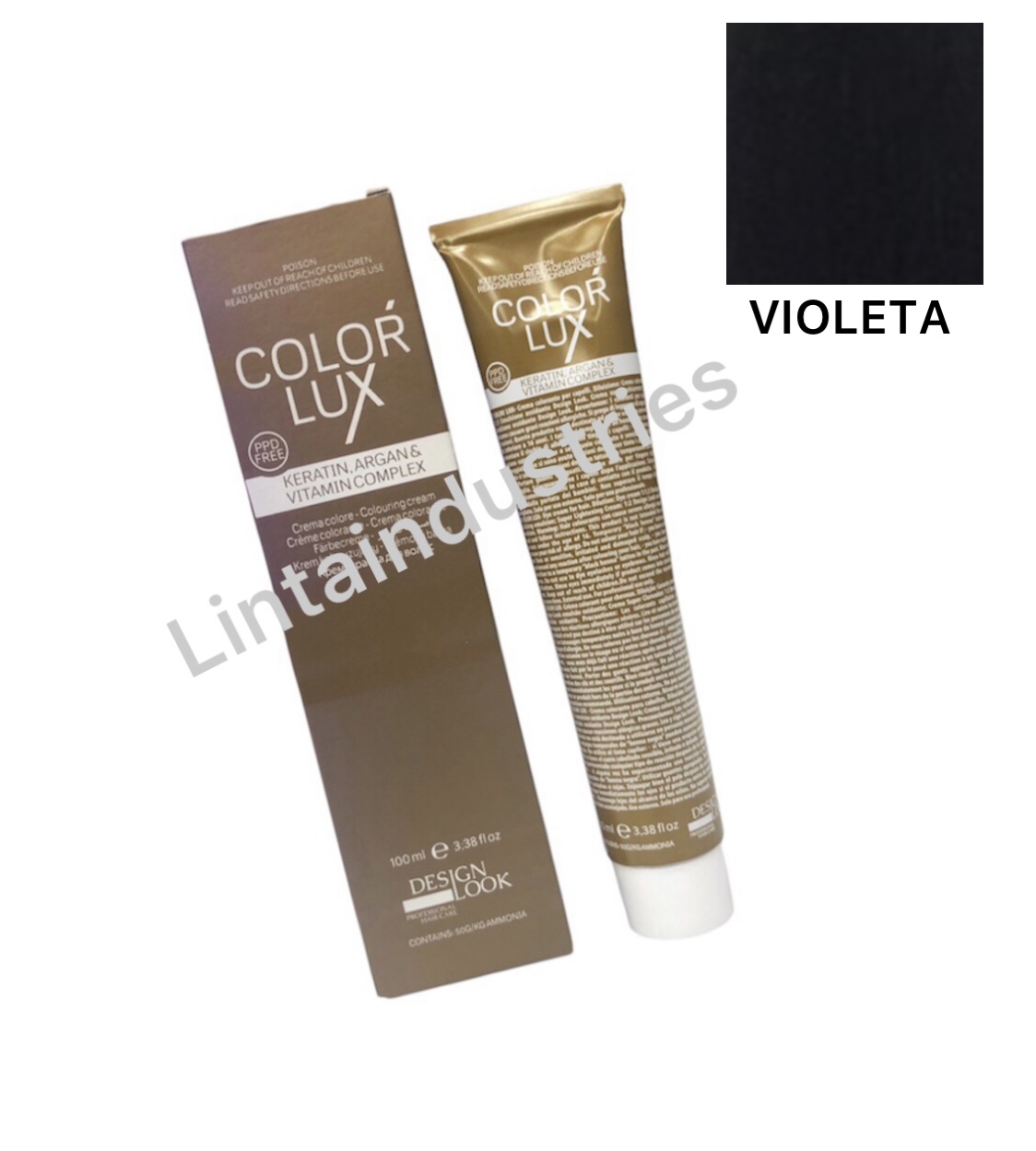 (VIOLETA ) con argán y keratina de Desing Look protege el cabello durante y después del proceso técnico. La fórmula de esta tintura deja el cabello suave y brillante sin dañarlo durante el proceso. Disponible en varios tonos y correctores.